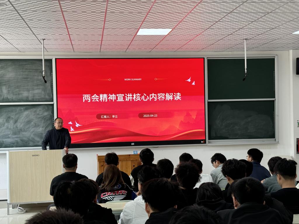 李立首先介绍了两会的基本概况,随后聚焦与地质领域紧密相关的议题进行深入解读。结合地质行业在资源勘探、地质灾害防治等领域的重大技术突破与发展趋势,激励同学们勇于探索、敢于创新,引导同学们思考如何在地质工作中贯彻绿色发展理念。