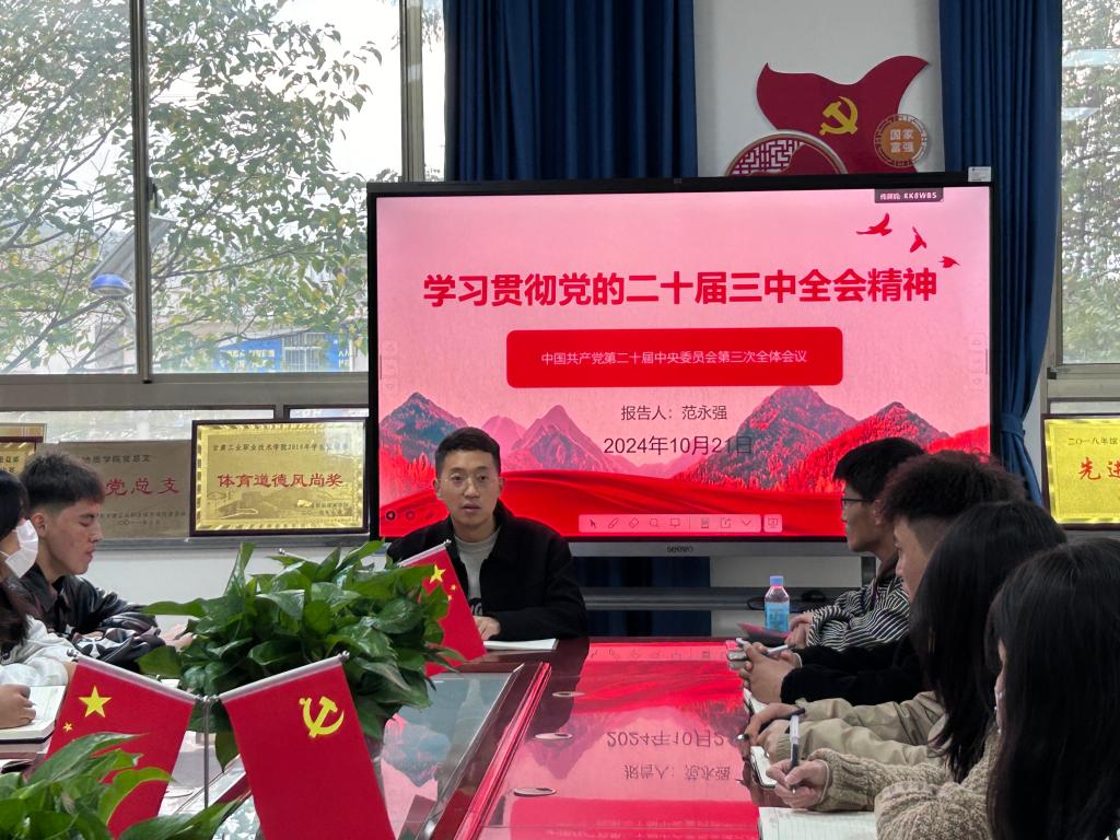 活动伊始,范永强领学了党的二十届三中全会内容,三中全会是在中国式现代化全面推进强国建设、民族复兴伟业的关键时期召开的一次重要会议,对于进一步明确改革方向、深化体制改革、推动高质量发展具有重要意义。随后,学生代表结合各自的工作实际,就如何贯彻落实全会精神进行了深入的交流和探讨。此次专题学习活动不仅让学生干部们深刻领会了党的二十届三中全会精神,也提供了宝贵的交流和学习机会。在今后的学习中,学生干部们将以更加饱满的热情、更加务实的作风,投身于新时代的伟大事业中,为实现学院的高质量发展贡献青春和力量。