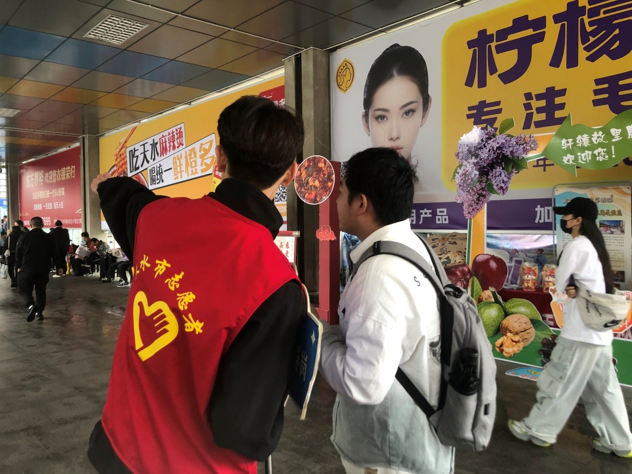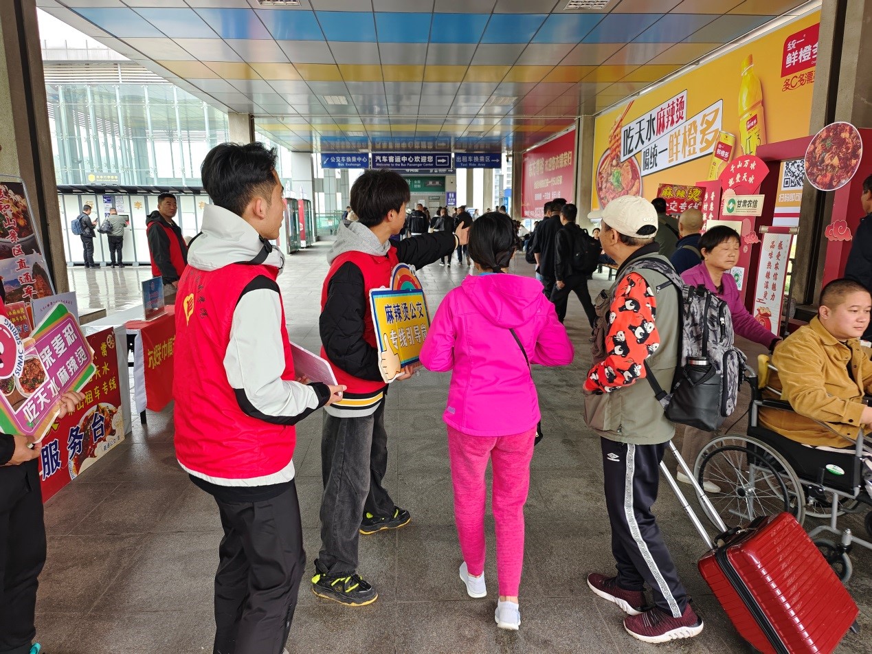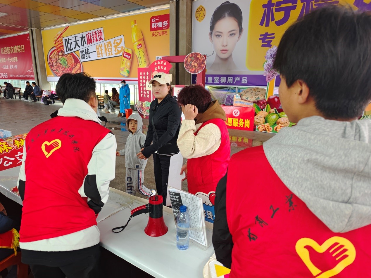 为充分展现我院团员青年的志愿服务精神,助力天水文化旅游产业发展,用心用情做好“高铁南站”服务保障工作,让外地游客充分感受到天水人民“热辣滚烫”的热情服务。4月9日,地质学院再次组织青年志愿者前往高铁南站开展志愿服务接待工作,为外地游客“舒心导航,热情服务”。