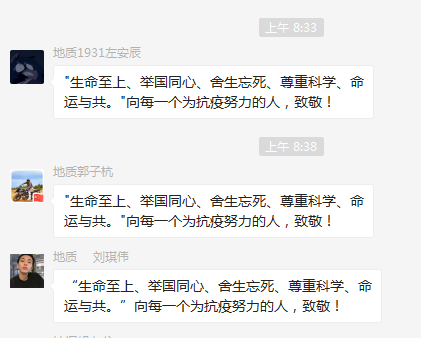 为了表达地质学院学子们对抗疫英雄的崇高敬意,学院于2020年9月8日在线上开展了对“国之英雄”热议为主题的活动。