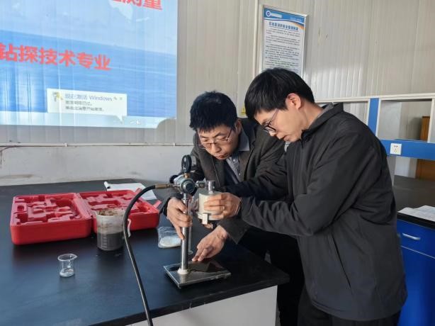 此次活动由钻探工程技术专业海存斌老师展示钻井液API标准滤失量的测定过程,地质学院全体教师进行了观摩学习。