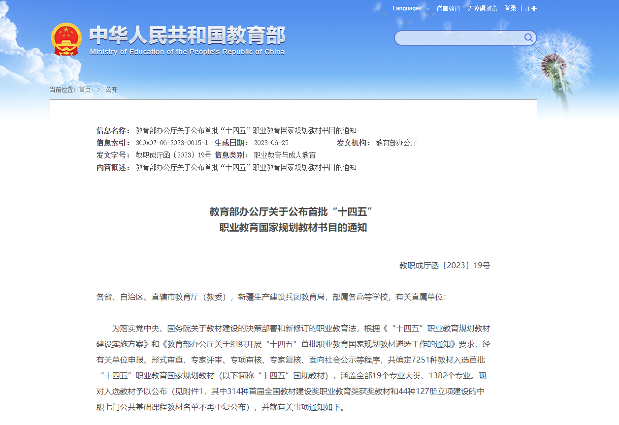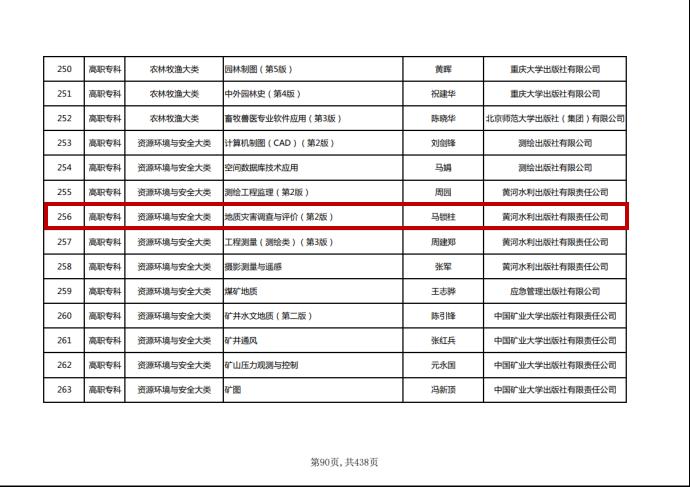 2023年6月30日,教育部职业教育与成人教育司发布《教育部办公厅关于公布首批“十四五”职业教育国家规划教材书目的通知》,经有关单位申报、形式审查、专项审核、网络和会议评审、专家复核等程序,地质学院教师马锁柱、李玲玲主编、郑情等参编的教材《地质灾害调查与评价》入选首批“十四五”职业教育国家规划教材。