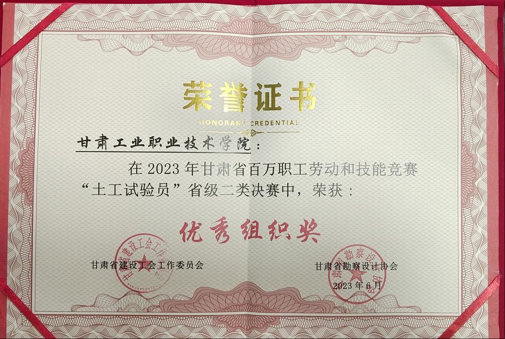 6月20日,甘肃省百万职工劳动和技能竞赛土工试验员省级二类决赛在甘肃中建市政工程勘察设计研究院有限公司举行,地质学院积极组织,选派地质学院郑情老师参加比赛,我校在此次比赛中荣获优秀组织奖。