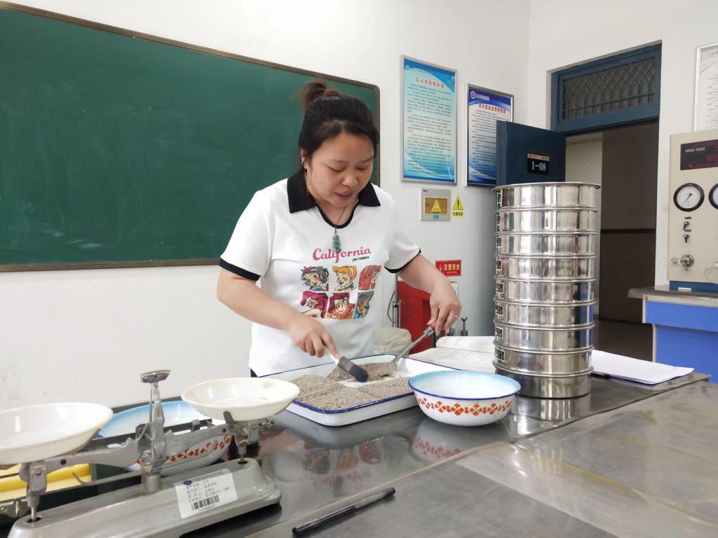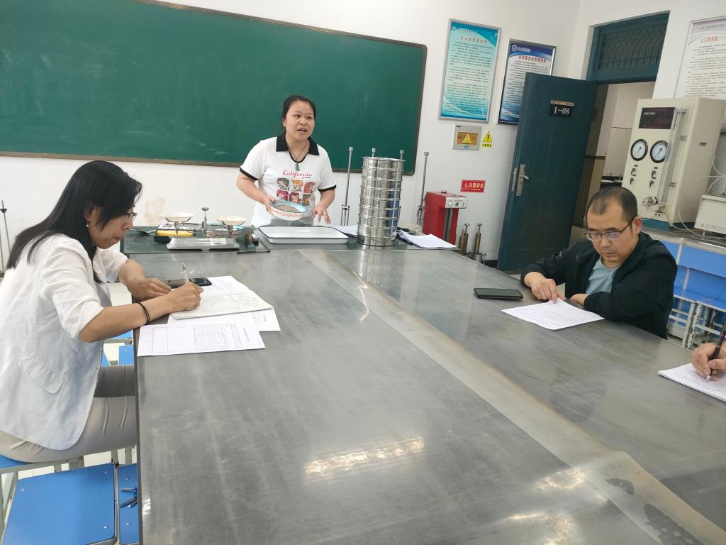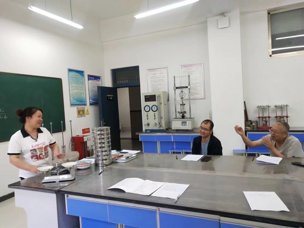 郑情老师从筛分法颗粒分析试验的目的任务、试验样品准备、试验操作、数据处理等方面进行了展示,展示效果良好,受到了观摩老师的一致好评。展示后,郑情老师就实践教学方法、实习教学条件等与观摩老师进行了深入交流。
