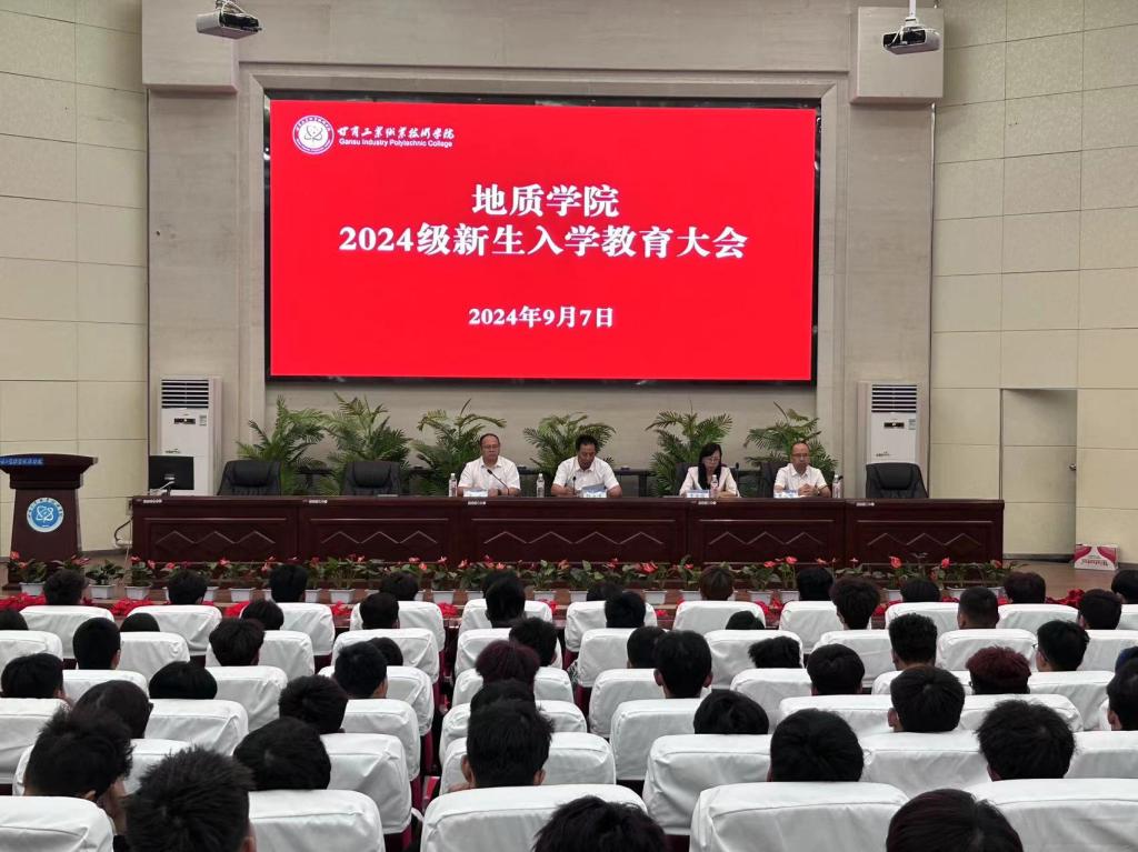为切实做好2024级新生入学教育工作,引导我院2024级新生尽快了解、适应校园生活, 9月7日上午,地质学院在图书馆五楼智敏报告厅召开2024级新生入学教育大会。学院领导班子成员、专业负责人、辅导员、新生班主任及2024级全体同学参加,会议由办公室主任廖天鹏主持。