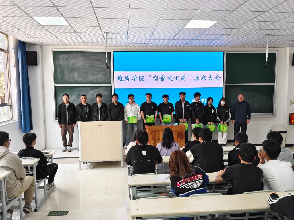 为进一步推动校园文明建设,积极营造安全、文明、和谐的宿舍环境,认真落实学校“宿舍文化周”的相关要求,4月23,学院在阶梯教室6召开地质学院“宿舍文化周”表彰大会暨公寓宿舍长工作会议。
