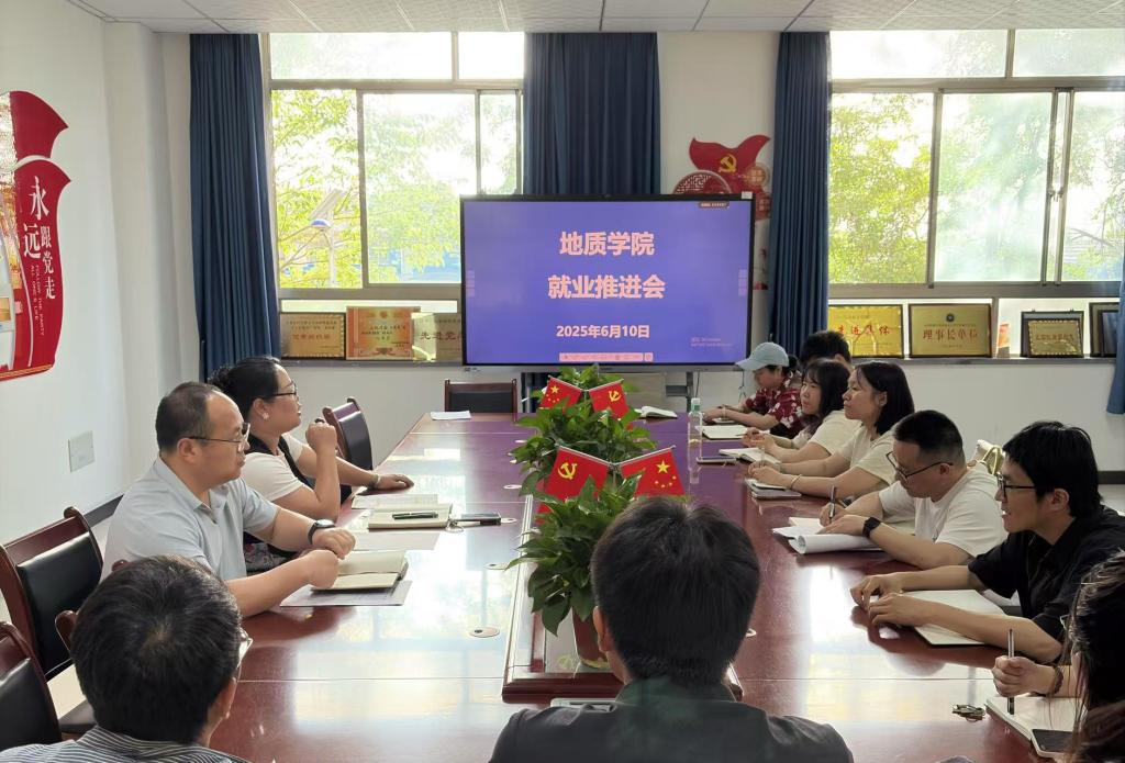 地质学院于2025年6月10日召开就业工作推进会,地质学院领导班子、班主任及辅导员参会。
