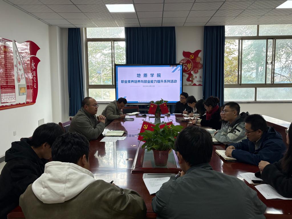 2025年10月22日,地质学院召开职业素养培养与就业能力提升工作培训会。23级、24级、25级全体班主任及辅导员参会。