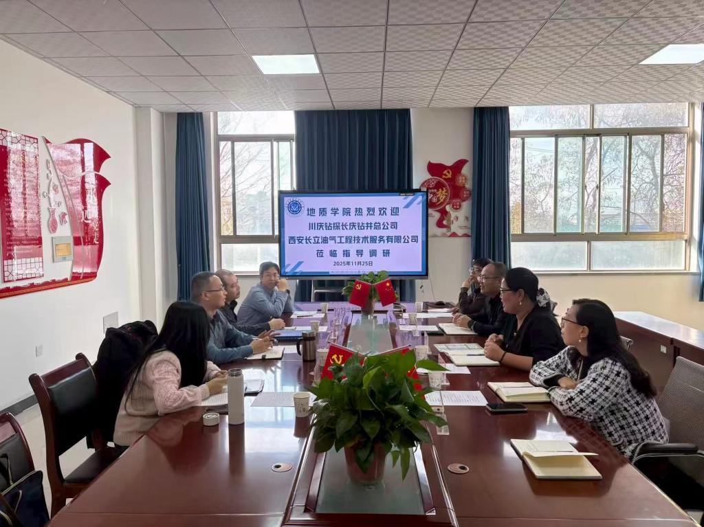 2025年11月25日,川庆钻探工程有限公司长庆钻井总公司人力资源部主管闫领群和西安长立油气工程技术服务有限公司人事部经理王燕一行到地质学院进行交流座谈。学院领导班子热情接待,双方围绕实习基地共建、“订单班”人才培养等议题展开深入交流。