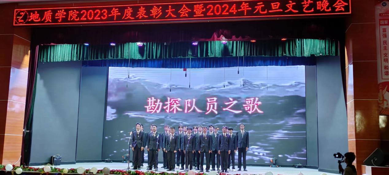 随后,学校党委委员曹惠清副院长宣布元旦晚会正式开始,大合唱《勘探队员之歌》拉开了晚会的序幕,合唱以激昂的旋律,火一般的热情激励着在场的每一位新时代地质人。