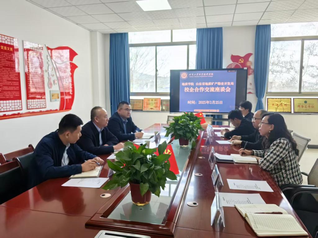 3月25日下午,山东省地质矿产勘察开发局工程地质处副处长秦承春一行三人来我院开展交流座谈,会议由副院长李玲玲主持,钻探专业全体教师参加。双方围绕地质人才培养、技术创新合作及产学研融合发展展开深入交流。